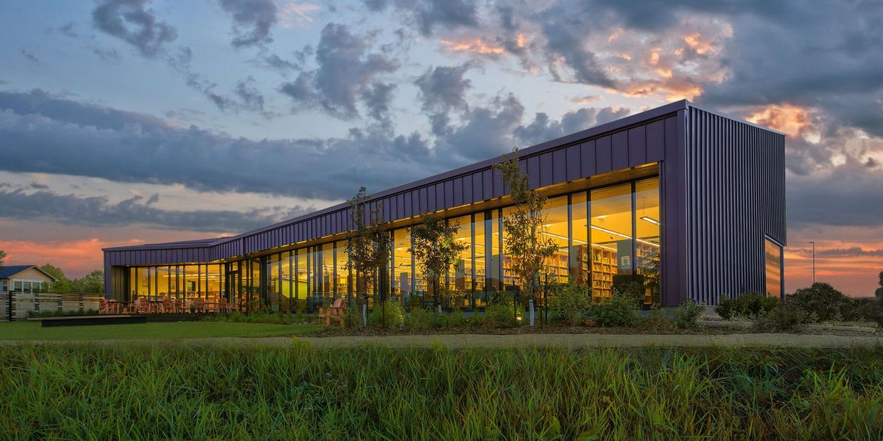 The architectural design is intended to optimize the visibility of the Library in the community. By introducing large expanses of glass, the library’s activity is highly visible, employing a strategy that also allows natural daylight to reflect deep into the building. The site is a reflection of it's landscape, framing and drawing focus to specific prairie vistas. The land has been restored to a natural prairie, boosting some 50 varieties of traditional local plants. This Urban Prairie is thanks to the partnership with Carolyn and Rob Cox and the East Interlake Watershed District (EIWD) which brought additional resources, manpower and skill to create an eco-jewel in the heart of our region.